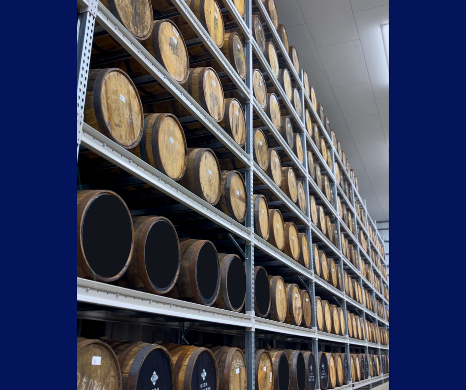 今期新設された樽倉庫(ウエアハウス)は、1列のラックは熟成中の樽でいっぱいになっております。